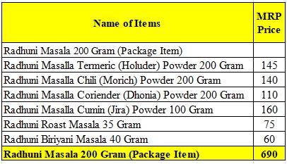 | Radhuni Masala 200 Gram (Package Item) |