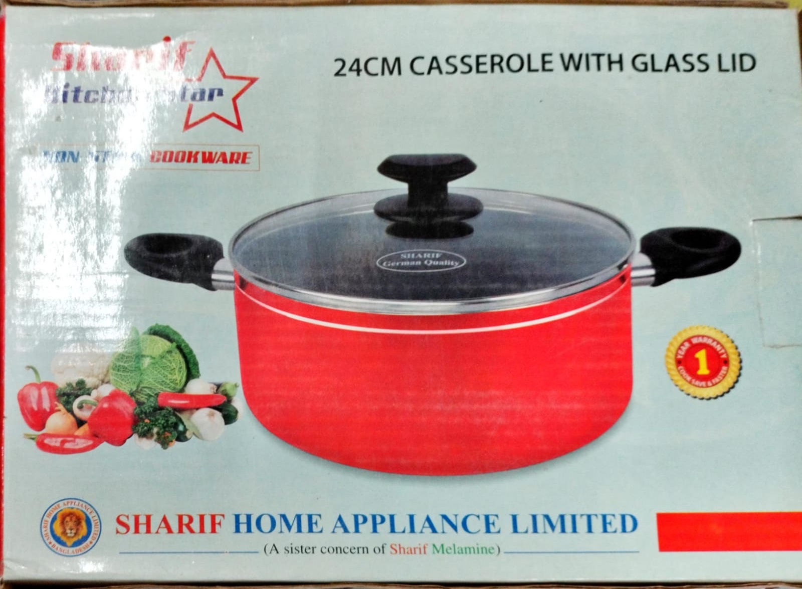 P172 Sharif 24 CM Casserole With Glass LID (Black / Red)